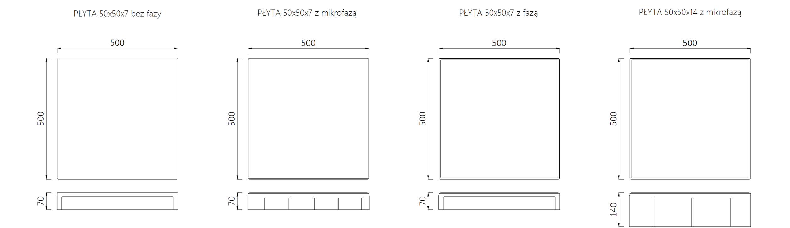 Tradycyjna płyta betonowa o wymiarach 50x50 w grubości 7 i 14 cm.